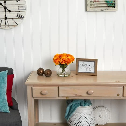 11″ Orange Rose Arrangement With Clear Glass Vase