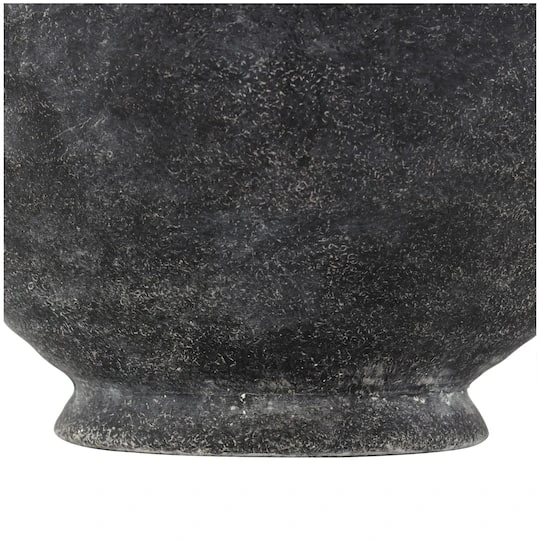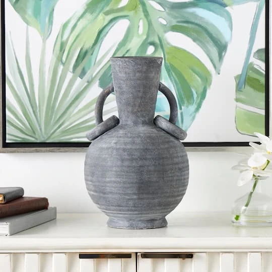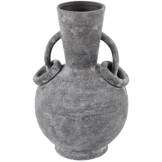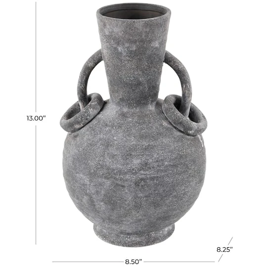 13″ Ceramic Textured Vase With Ring Handles Gray