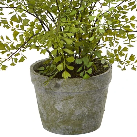 The lifelike green ferns of this artificial maiden hair plant make it look as it if was grown outdoors! with its beautifully trimmed foliage reaching up and out from the included planter with moss, it is the perfect ornament to give any room a natural touch. Place it among faux flowering plants to provide an extra lush, realistic look.