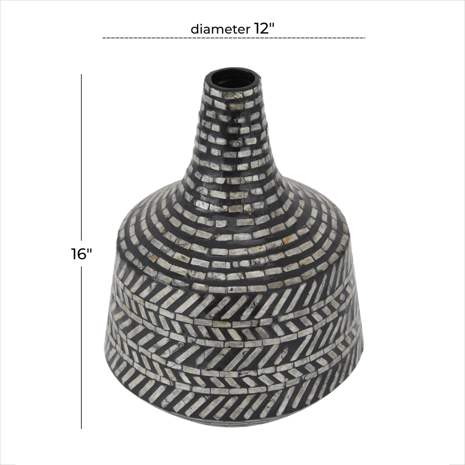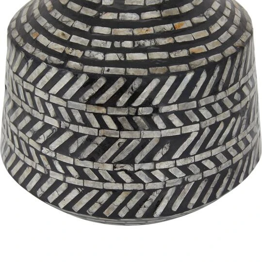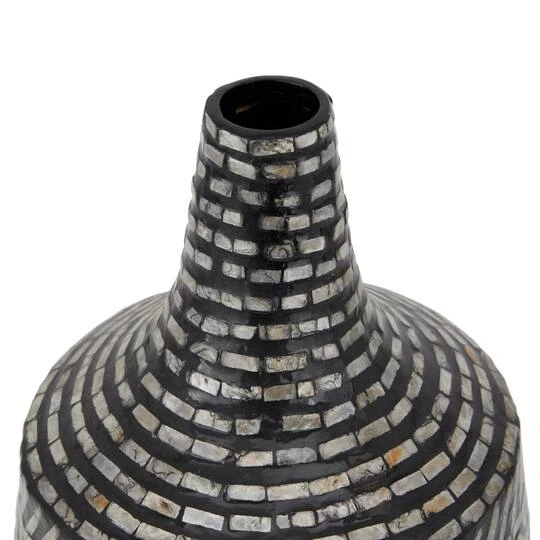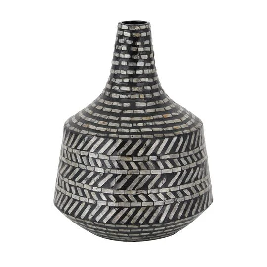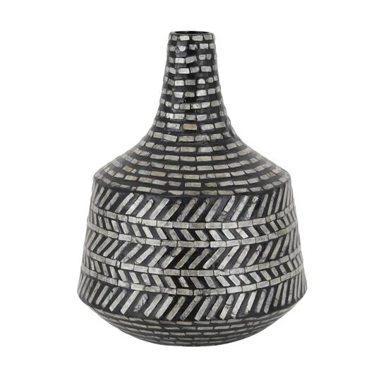 Add a delicate touch of artisan vase into your modern living spaces as you display this bamboo and shell vase on top of dark colored furniture pieces. This vase is perfect for displaying orbs filler and twigs, as well as filling up any negative space against an open surface space. Create depth and form onto your space by displaying this beautifully crafted vase. This item is shipped in one carton. Due to the handmade nature of this item, no two will be alike, there will be slight differences in shape, size, and color. Made in Vietnam. Contemporary style.