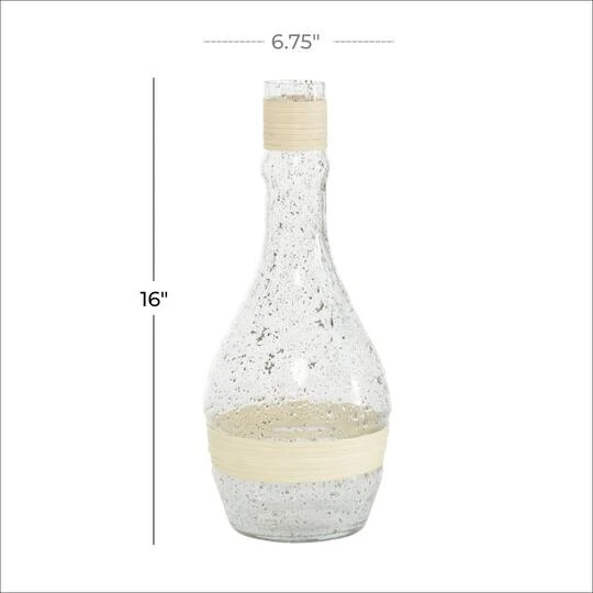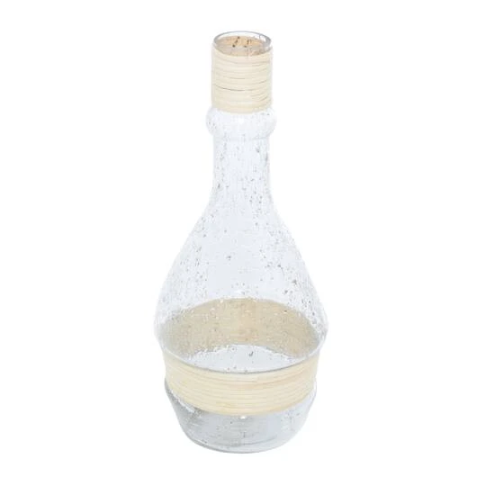 Add a sparkling and whimsical touch of fairytale-inspired decoration into your coastal and minimalist living space with this charming clear glass vase! This light and alluring home décor piece showcases a long-necked, waterproof glass jar vase designed with light beige-colored raffia ribbons wrapped on its neck and bottom. It’s most ideal as an accentuating, decorative vase for long, single-stemmed flowers like rose, dahlias, and tulips.