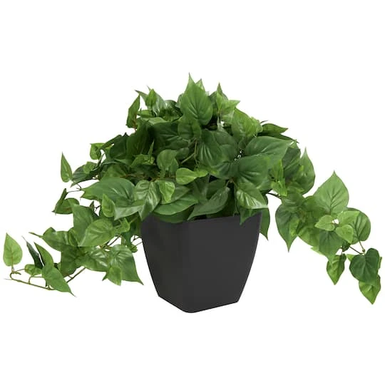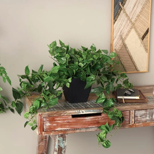 16″ Green Pothos Artificial Plant With Black Plastic Pot