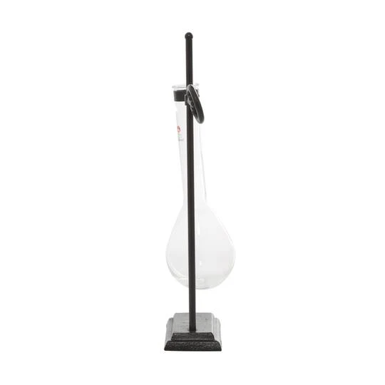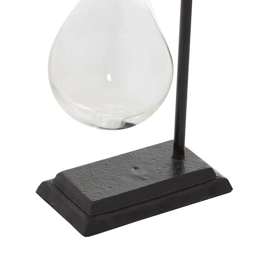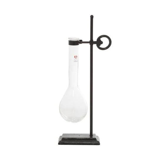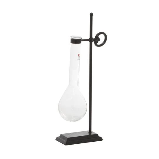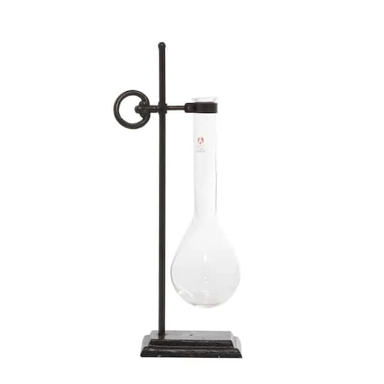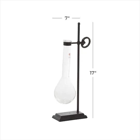 This clear hanging glass bulb beaker planter with metal stand is here to give your indoor plants an elegant and classic vibe. Made from clear glass, it flaunts a bulb shape hanging vase structure with slightly long tapered neck and a full metal stand with hinged neck grip and natural black finish. Use as a trendy flower holder on your coffee, console, and kitchen tables, this science beaker planter is a perfect addition to your contemporary indoor home spaces.