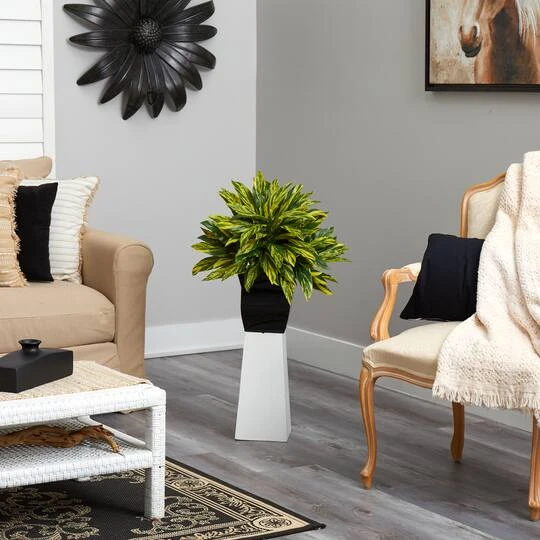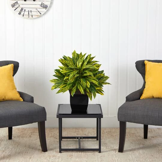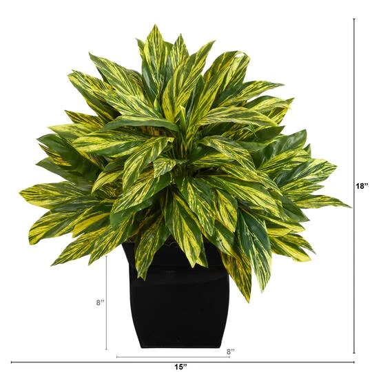 Cure your wanderlust with this eclectic Spiderwort plant. Variegated green leaves with an Ombre-like yellow bring color and green foliage to any space. Recreate the jungle look effortlessly; the leaves even feel free to touch! Standing 18″ from a black metal planter (included in height), bring the sight of exotic lands to your living areas. Perfect for a lonely corner, office desk and makes a lovely gift.