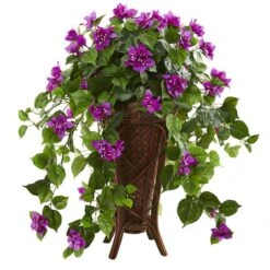 Delicate blossoms lay interspersed among the lush foliage with this artificial bougainvillea plant. The leaves hang elegantly over a versatile stand planter. Perfect for a vintage inspired look, you can position this piece on a side table in your living room to accent any nearby furniture pieces.