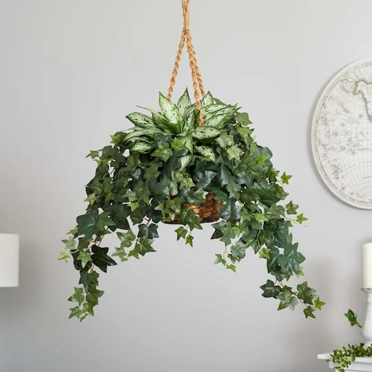 2.5ft. Silver Queen And Ivy Plant In Hanging Basket