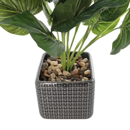 20″ Green Foliage Artificial Plant With Black Ceramic Pot