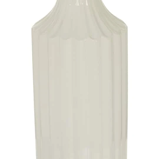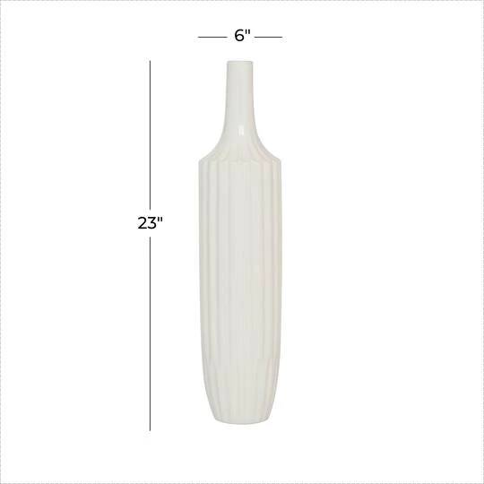 Make the most out of its simple and classic design in contemporary and modern inspired settings. The body features a ribbed texture that complements its tall and narrow mouth build. Put flowers in it, or use it as a stand-alone tabletop decoration. It also captures attention on top of wall dressers, in shelves, and next to wall mirrors.