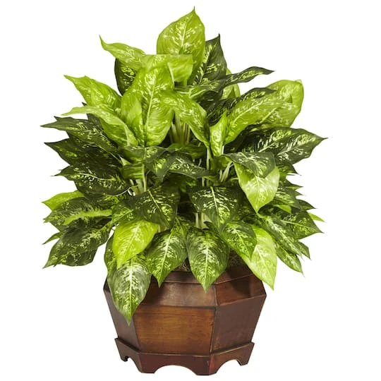 This leafy dumb cane, with its golden green leaves, adds a sense of purpose to any room. The plant’s leaves look so lustrous, that anyone could be fooled into thinking this is the real thing. Silk plants are manufactured using synthetic materials, such as polyester material or plastic, and are well designed and constructed to be lifelike in appearance. This item will need to be reshaped when removed from the secure box to allow it to reach its fullest size. Your artificial plant will look beautiful for years to come; simply wipe clean with a soft dry cloth when needed.