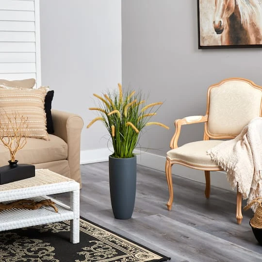 Onion grass might be challenging to control in the wild, but this artificial plant is modern, sleek and exudes refined luxury. With its natural, wild look, the stylish green blades have light hues tips for a warm touch. Standing at 37″ from a decorative gray planter, pair this lifelike piece with flowers for contrasting textures in spaces such as offices, bedside tables and corners. Go wild with your décor, maintenance-free.