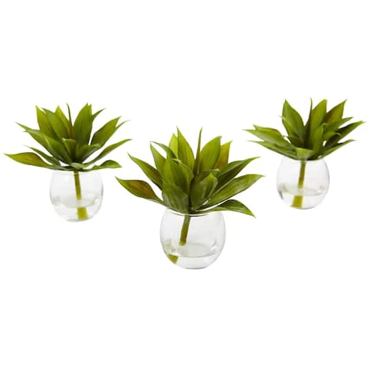 5.75″ Mini Agave Succulent In Glass Vase, 3ct.