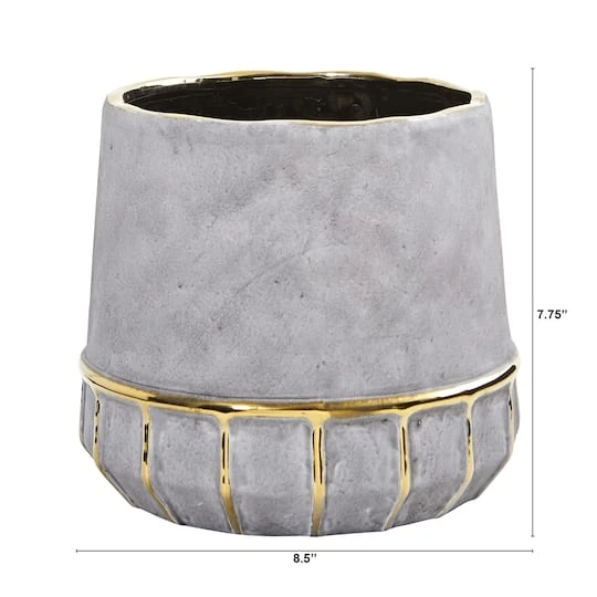 Love your new plant but not the planter? It’s your lucky day with this Stoneware Oval Vase with gold trimmings (Set of 1). DIY your own faux-bulous arrangement easily, effortlessly and confidently by adding your own finishing touches. If you’re into Hollywood glam or mid-century modern, you’ll love this ceramic vase’s gold trimmings against the stoneware base. Standing 7.75″ high, you can set in a tabletop against a walled mirror for a chic look. No drainage holes.