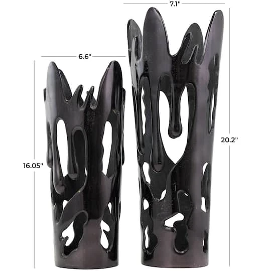 Embrace artistic expression with a style that highlights bold designs with sleek lines, neutral elements, and a minimalist aesthetic. Crafted from high-quality aluminum, these vases showcase a durable material that ensures longevity and stability. The drip vase boasts a luxurious black metallic color with a polished finish, adding a touch of glamour and sophistication to your space.