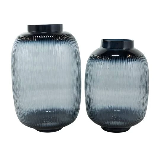 This round glass vase set showcases an ombre smokey black color with a glossy finish, adding a touch of sophistication to your space. This set of two black vases come in varying heights to offer versatility and options for creating visually captivating floral arrangements.