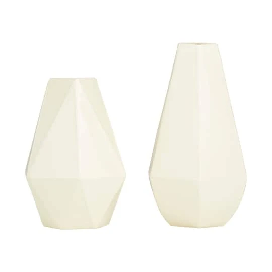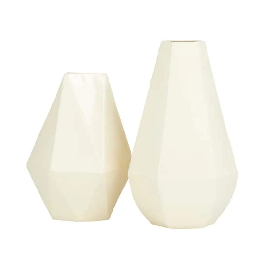 CosmoLiving By Cosmopolitan Cream Iron Contemporary Vase, 12″ X 10″