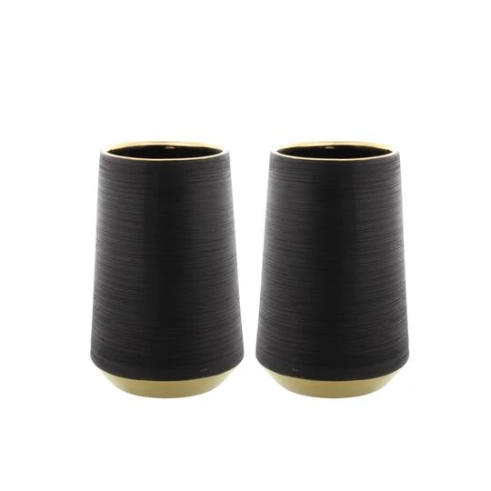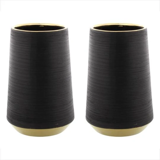 CosmoLiving By Cosmopolitan Set Of 2 Black Porcelain Glam Vase, 5″ X 8″