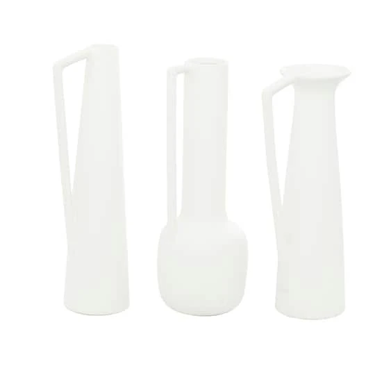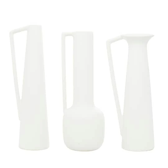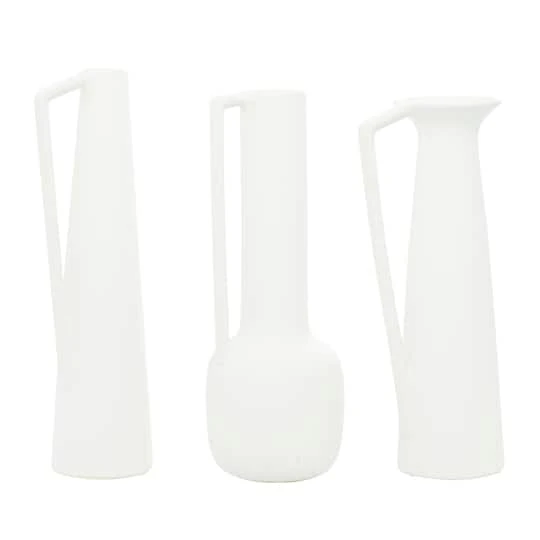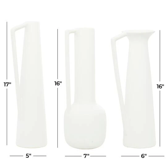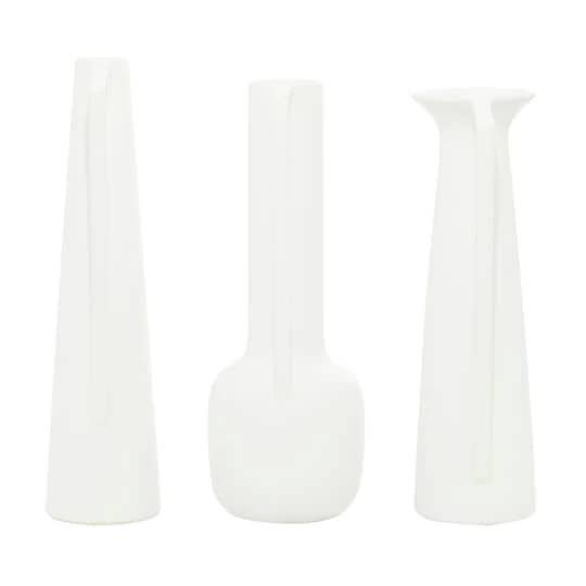 CosmoLiving By Cosmopolitan Set Of 3 White Ceramic Modern Vase, 17″, 16″, 16″