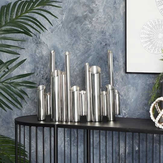 CosmoLiving By Cosmopolitan Silver Stainless Steel Contemporary Vase, 12″ X 14″ X 4″