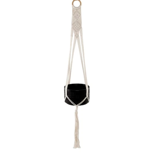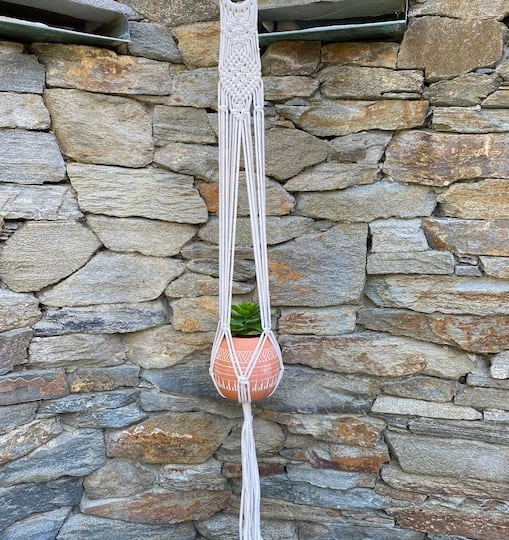 This macramé planter hanger will make a lovely indoor décor piece. Place your favorite potted plant inside to complete the look.