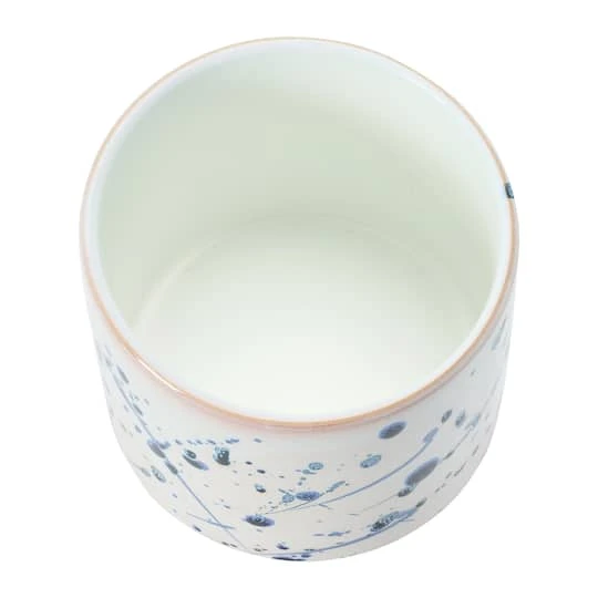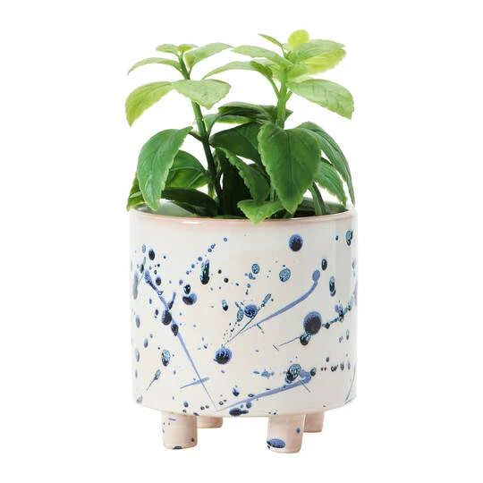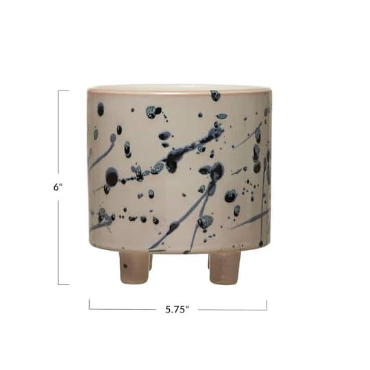 This charming and stylish stoneware footed planter has an artistic splatter pattern. This artsy planter will help bring in a lively touch of greenery to any bedroom, kitchen, living room, or office.