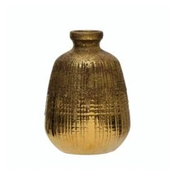 Display this stylishly versatile gold vase as a sophisticated mantel accent or part of an inviting dining table centerpiece.
