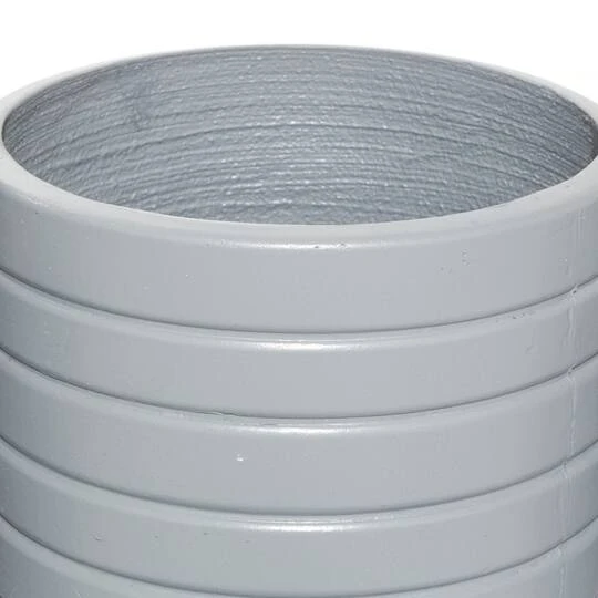 A smart chic style inspired living space knows how important mixing and matching is, especially when it comes to adding some greenery in your space. This round gray fiber clay horizontal etched lines planter is up for that task. The fiber clay construction of this planter means toughness without sacrificing beauty and elegance thanks to its horizontal etched lines pattern design on the surface. The entire piece rests on a wooden tripod leg design with circular wooden legs in a light brown hue. This planter set will bring a much-needed freshness with indoor plants to your living room, dining room, home office or entry way. Ships in 1 carton. Suitable for indoor and outdoor use. No drainage holes. Each set includes with 3 planters. Contemporary design.