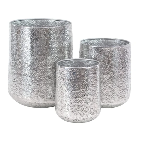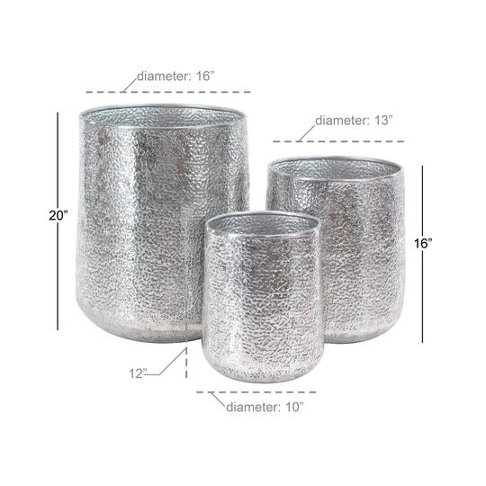 Set Of 3 Silver Aluminum Glam Planter, 12″, 16″, 20″