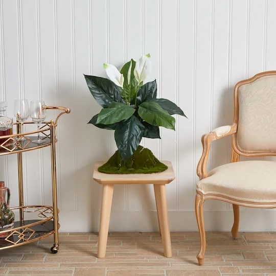 Two white blooms accent and stand out among the green leaves that extends outward in different directions. Coming in a set of three, the simplicity and elegance of this piece makes it easy to incorporate into your existing plant arrangement in your home. However, these would be a perfect fit to decorate your wedding reception tables on a mirrored tray with LED candles. Item may need to be re-shaped when removed from box.